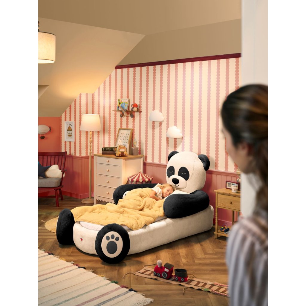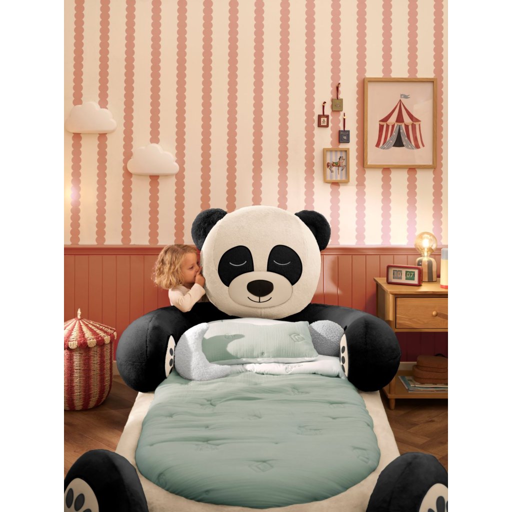 Postýlka s plyšovým motivem je navržena jako okouzlující dekorační prvek do dětského pokoje a zároveň jako plyšový společník na spaní , který dítěti pomůže prozkoumávat jeho vlastní prostor . Díky nízkému designu, který je v souladu s metodou Montessori, umožňuje dětem vytvářet si vlastní rytmy, zatímco její hřejivý tvar plyšového medvídka Panda vytváří bezpečnou a zábavnou atmosféru.