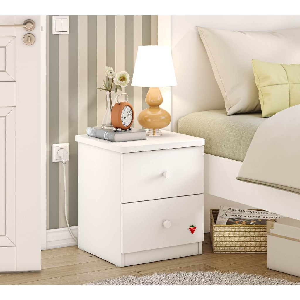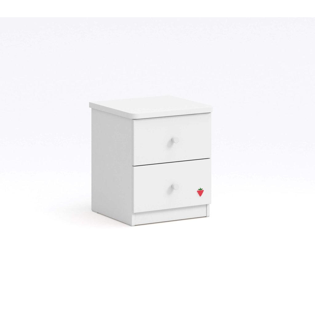 Malý, ale přesto tak praktický. Noční stolek v bílé barvě má dvě zásuvky k ukládání všeho potřebného poblíž postele a zároveň vytváří ještě dostatek místa na postavení lampičky či sklenice s vodou.