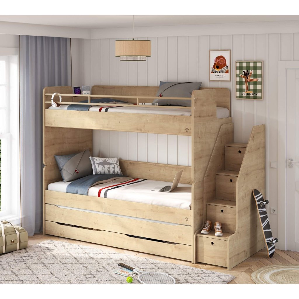 Patrová postel Mocha Studio pro 3 děti 90x200 cm s úložným prostorem (schody)