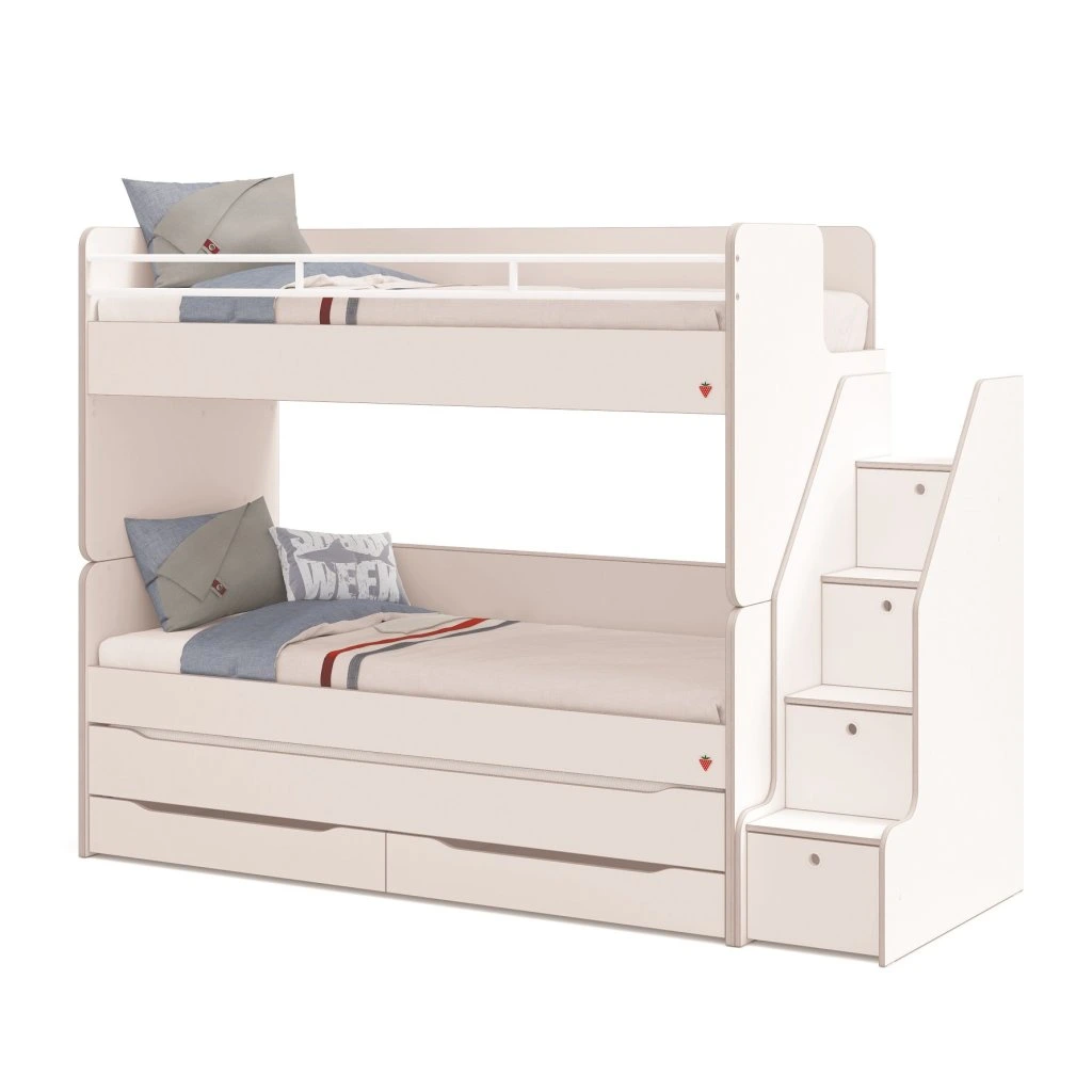 Boční stranu postele zdobí schůdky s přihrádkami, které nejen umožňují snadný přístup na horní lůžko, ale také poskytují další úložný prostor. Přihrádky jsou kryté vyklápěcími dvířky s úchytkou. Schůdky lze umístit jak z pravé, tak i z levé strany postele. Jsou pomocí šroubů pevně spojeny s postelí a nehrozí tak, že by se od postele odsunuly a způsobily nepříjemné zranění. Nášlapy jsou vyztuženy speciálními podložkami, které zajistí, že vydrží i každodenní dětské radovánky.