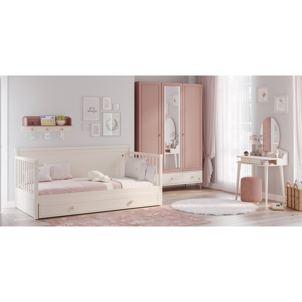 Pod postel lze dokoupit výsuv, který lze využít s matrací jako přistýlku, nebo bez matrace jako dostatečně velký úložný prostor.