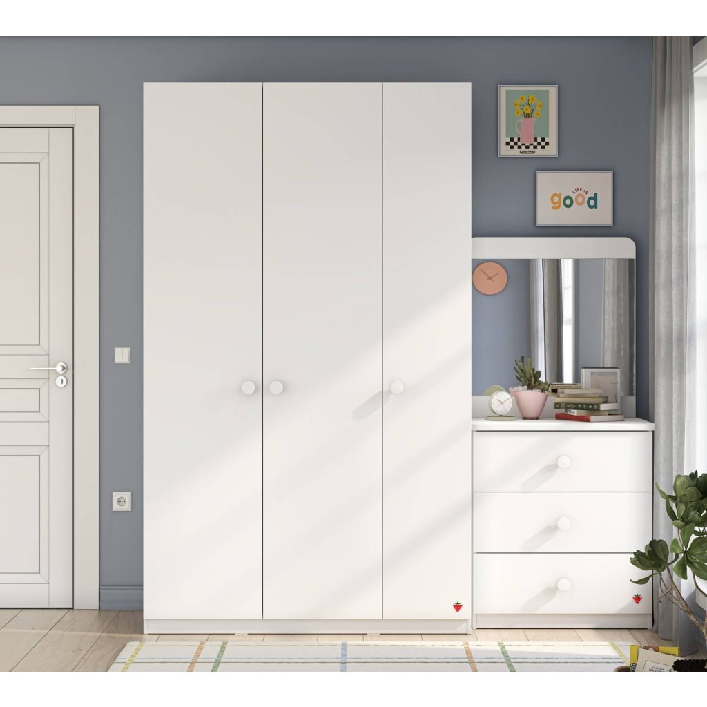 Moderní šatní skříň třídveřová bez zrcadla Varia White