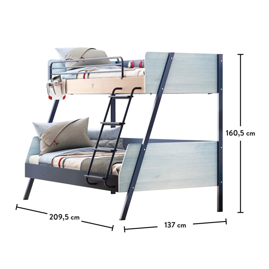 Studentská patrová postel Trio je nejen krásná, ale také bezpečná a funkční. Prostorné dolní lůžko o rozměru 120x200 cm nabízí opravdové pohodlí. Pevné bočnice u horní postele 90x200 cm zajistí klidný a bezpečný spánek. Součástí horní bočnice je textilní kapsář, díky kterému budete mít vždy vše při ruce. Žebřík s protiskluzovou úpravou ochrání před úrazem a lze namontovat jak z pravé tak i z levé strany postele. Speciální povrchová úprava, zpracování podle nejmodernější technologie v oblasti studentského nábytku.