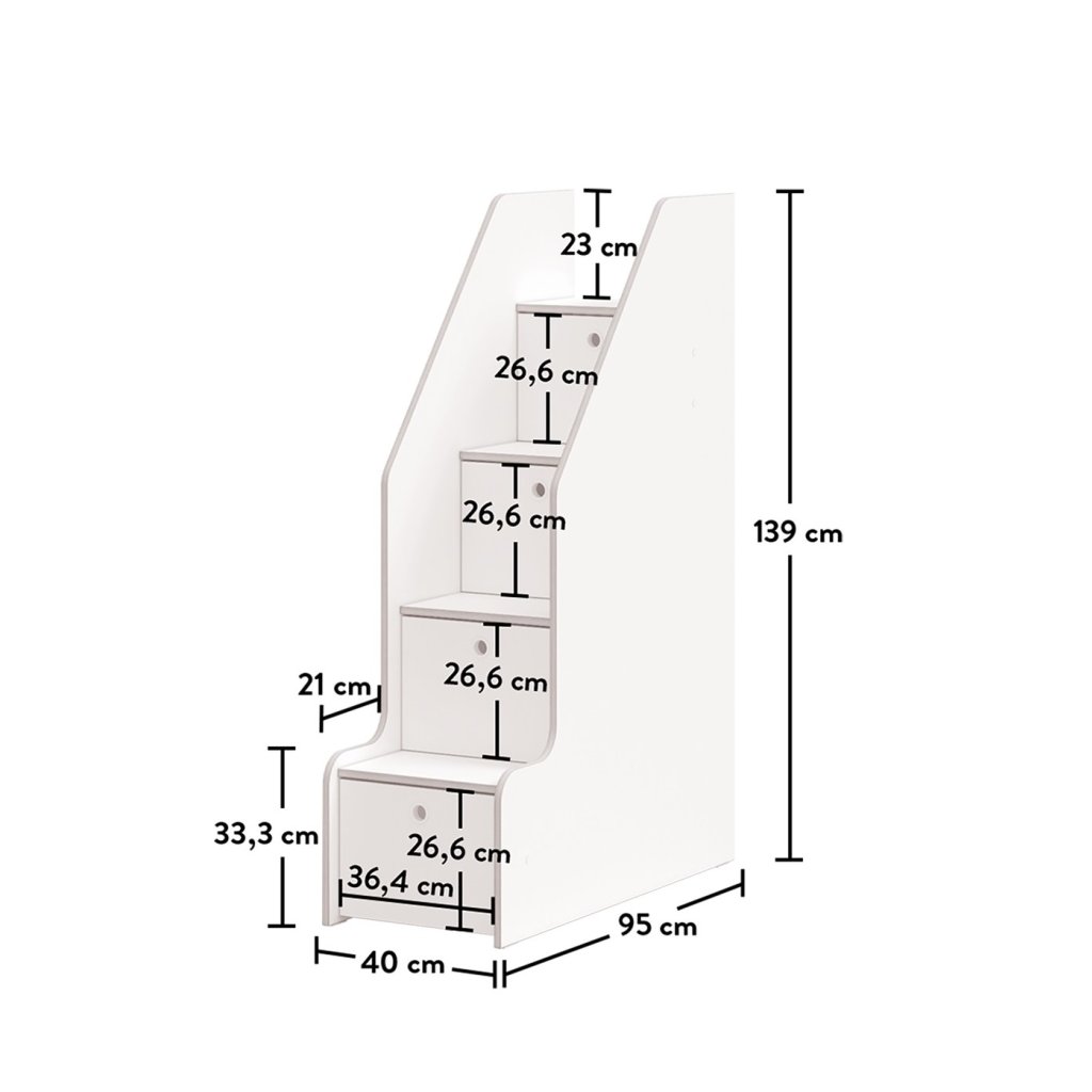 Zvýšená postel 90x200 cm se schody SET White Studio